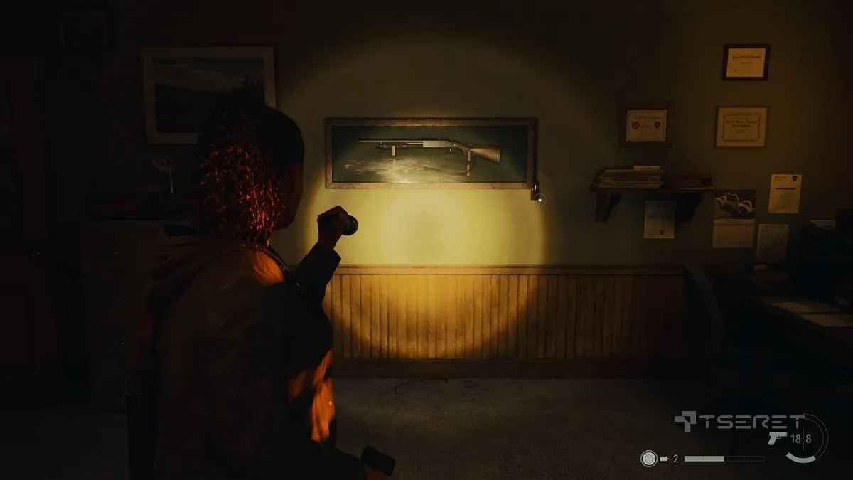 Cependant, dans Alan Wake 2, le fusil à pompe est verrouillé derrière un cadenas avec un code inconnu.