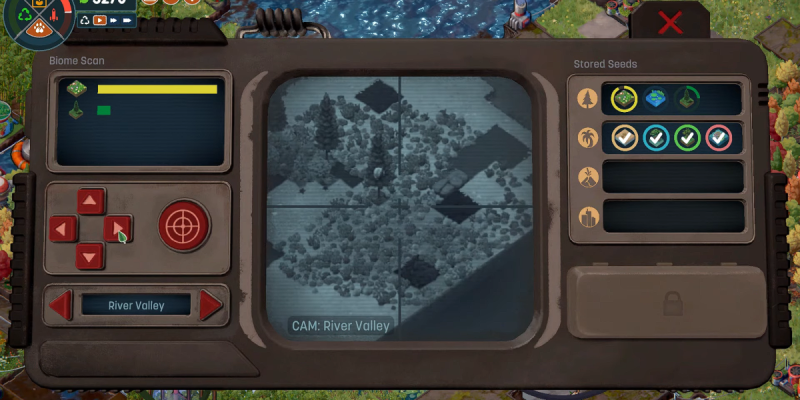 Lorsque vous collectez toutes les graines nécessaires dans un biome spécifique, vous pouvez rappeler le satellite.