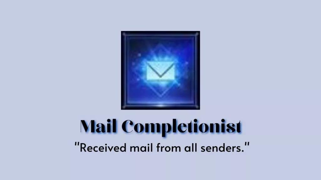 La description en jeu du Mail Completionist est « avoir reçu du courrier de tous les expéditeurs ».