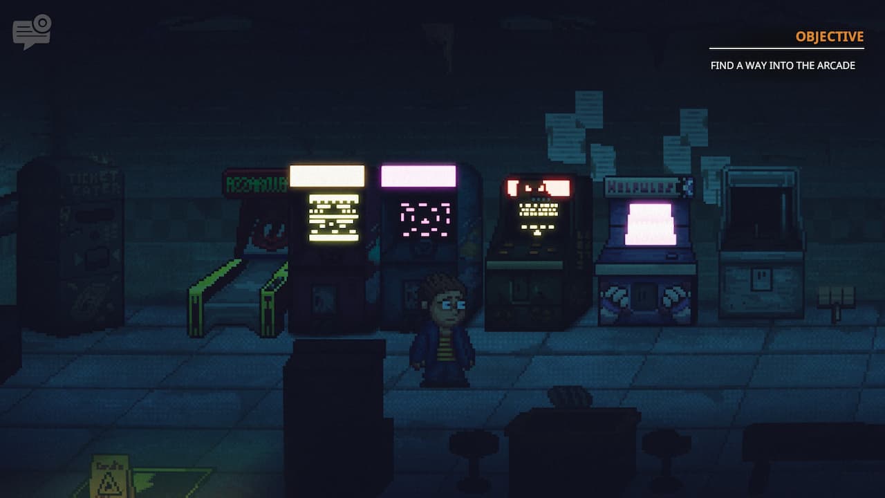 Cette pizzeria dans laquelle vous passez la majeure partie du jeu a la même disposition dans le passé que dans le futur (plus ou moins une salle arrière), y compris l’illustre salle d’arcade. Cependant, si vous retournez à la pizzeria de Jeff dans le présent, vous trouverez l’arcade autrefois glorieuse, maintenant délabrée et croustillante.