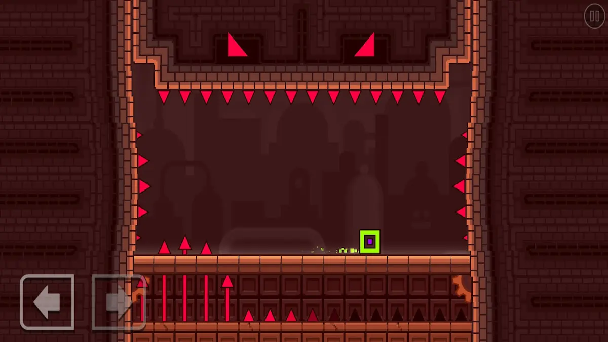 Enfin, deux mini vagues de pointes se déplaceront de gauche à droite. Assurez-vous que lorsque vous sautez par-dessus eux, vous sautez au milieu, car soudainement, toutes les pointes sauf les deux du milieu se lanceront.