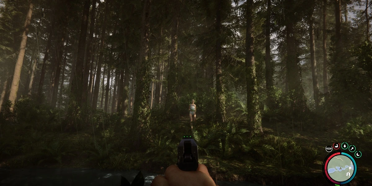 En jouant à Sons of the Forest, vous pourriez tomber sur un spectacle particulier : une femme en maillot de bain qui se promène sans se soucier des températures glaciales.
