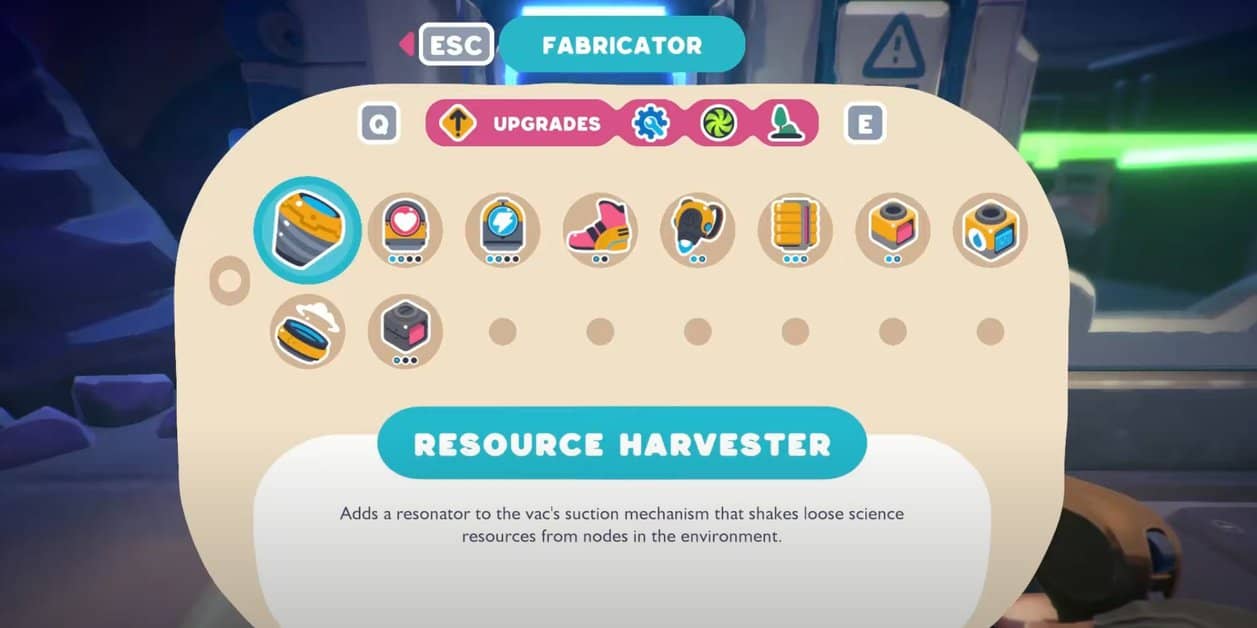 Le collecteur de ressources est une amélioration de votre aspirateur qui vous permet de récolter des types spécifiques de nœuds.